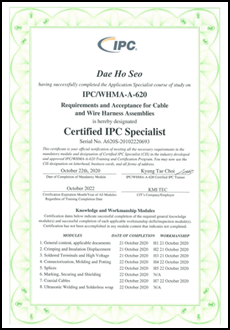 주요 작업자/검사자의 일솜씨 향상을 위한 인증서 확보 및 지속적인 자체 교육훈련 실시
