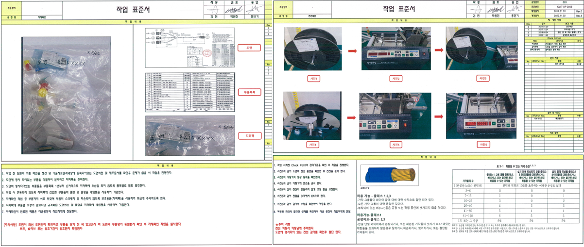 개발 뿐만 아니라, 양산까지 전 공정 작업표준서를 적용하여, 일관된 제품 품질 구현