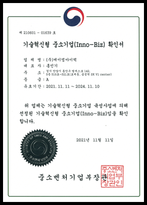 INNO-Biz 인증서