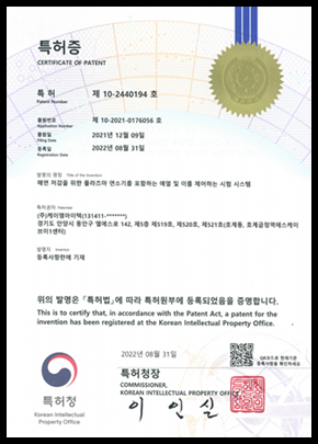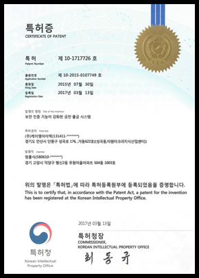 공인된 인증서와 지적재산권(특허 등) 확보 진행중